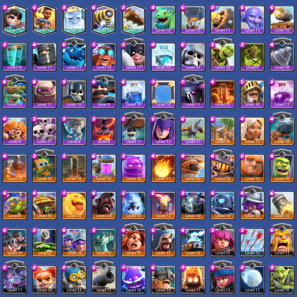 [KT13] | Level 39 | 7812 Trophies | Arena 20 | 119 Cards | 2010 Wins | CoC TH11 | 1 Elite | 1 Max | 6 Champions | 20 Legendary | #YQQ8766
