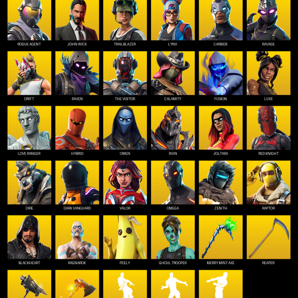[PC] | 113 skins | Merry Mint Axe | Omega | Rogue Agent | John Wick | Trailblazer | Lynx | Carbide | Ravage | Drift | Raven | The Visitor | #CAA0836