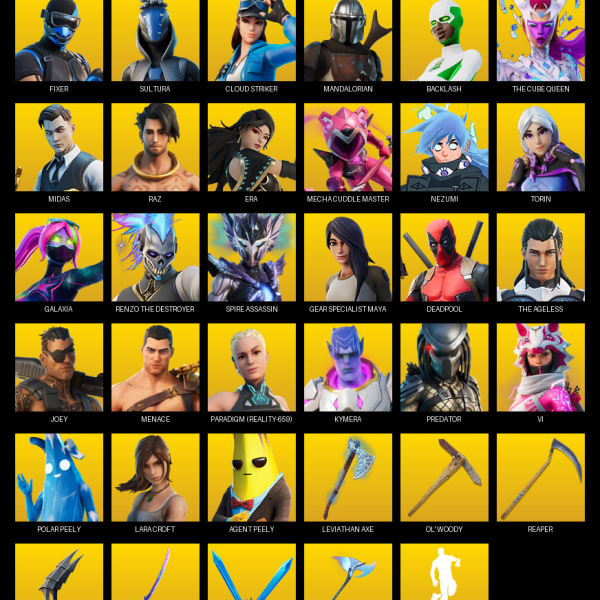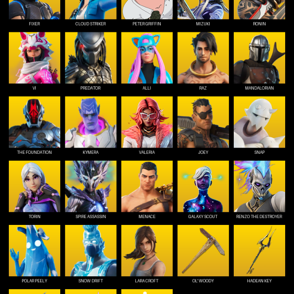 [PC] | 125 skins | Lara Croft | Fixer | Cloud Striker | Peter Griffin | Mizuki | Ronin | Vi | Predator | Alli | Raz | Mandalorian | #PXK7101