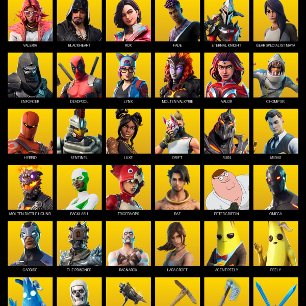 [PC] | 136 skins | Leviathan Axe | Lara Croft | Breakpoint | Zenith | Blackheart | Deadpool | Galaxia | Lynx | Joltara | Hybrid | #PMN4916