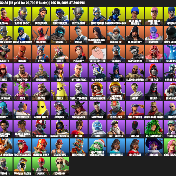 [PC/XBOX] | 87 skins | Cloud Striker | Prodigy | Xander | Trilogy | Carbon Commando | Peter Griffin | Zenith | Lynx | Spectra Knight | #DCZ5994