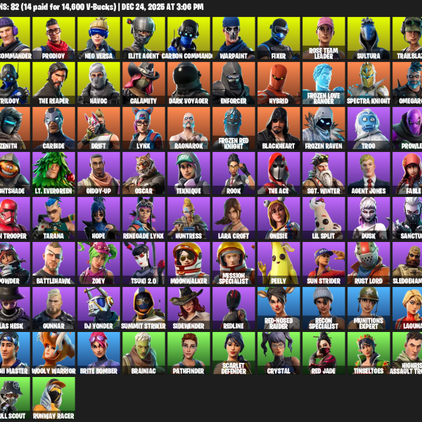 [PC/XBOX] | 82 skins | Take The L | OG STW | The Reaper | Elite Agent | Lara Croft | Sub Commander | Prodigy | Neo Versa | Carbon Commando | #XZB2249