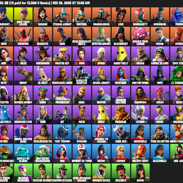 [PC/XBOX] | 88 skins | 1200 V-bucks | Merry Mint Axe | OG STW | Warpaint | Rose Team Leader | Sorana | Eternal Knight | Sentinel | #ZBA0701