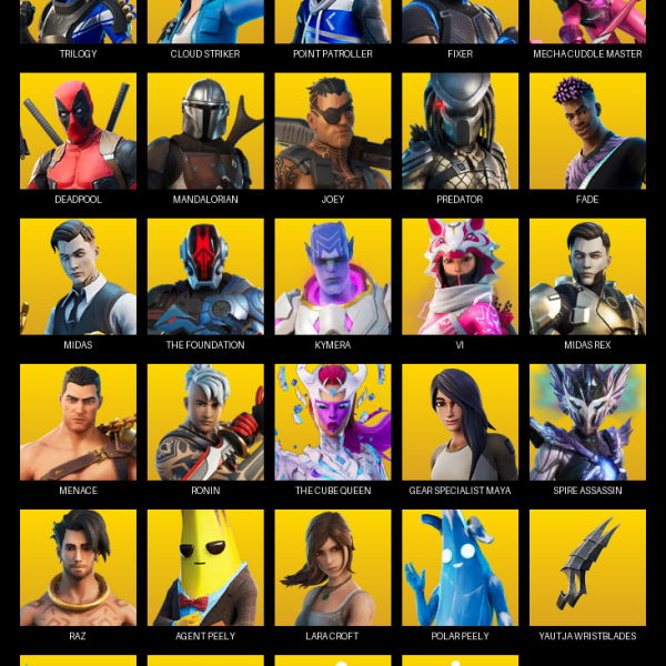 [PC/XBOX] | 84 skins | Lara Croft | Trilogy | Cloud Striker | Point Patroller | Fixer | Mecha Cuddle Master | Deadpool | Mandalorian | Joey | #SFX8648