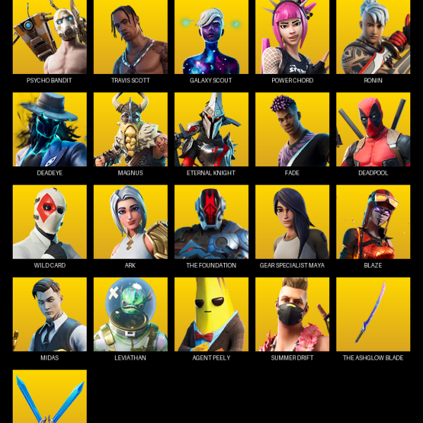 [PC/XBOX] | 72 skins | Travis Scott | Psycho Bandit | Galaxy Scout | Power Chord | Ronin | Deadeye | Magnus | Eternal Knight | Fade | #RMH0279