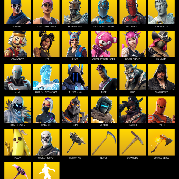 [PC] | 57 skins | 550 V-bucks | OG STW | Reaper Axe | Warpaint | Rose Team Leader | The Prisoner | Frozen Red Knight | Red Knight | #TXM7348