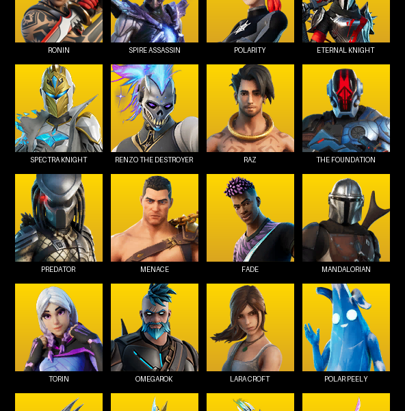 [PC/XBOX] | 67 skins | 800 V-bucks | Lara Croft | Ronin | Spire Assassin | Polarity | Eternal Knight | Spectra Knight | Renzo the Destroyer | #HYQ6425
